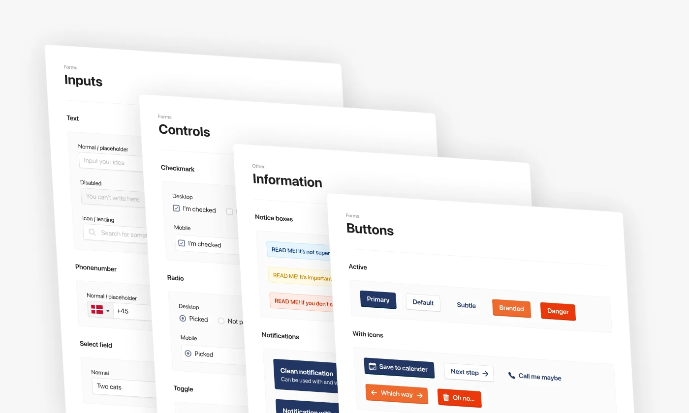 During my time at BoligPortal, I lead the product/design process of creating a design system that would lay the interactive and style foundation of a new platform we were building. A universal platform that had the scope of combining three different products. This write-up will go through the process from scoping and finding the goal of this system, to how we kept it up to date and iterated each development sprint after introduction.