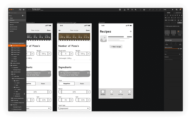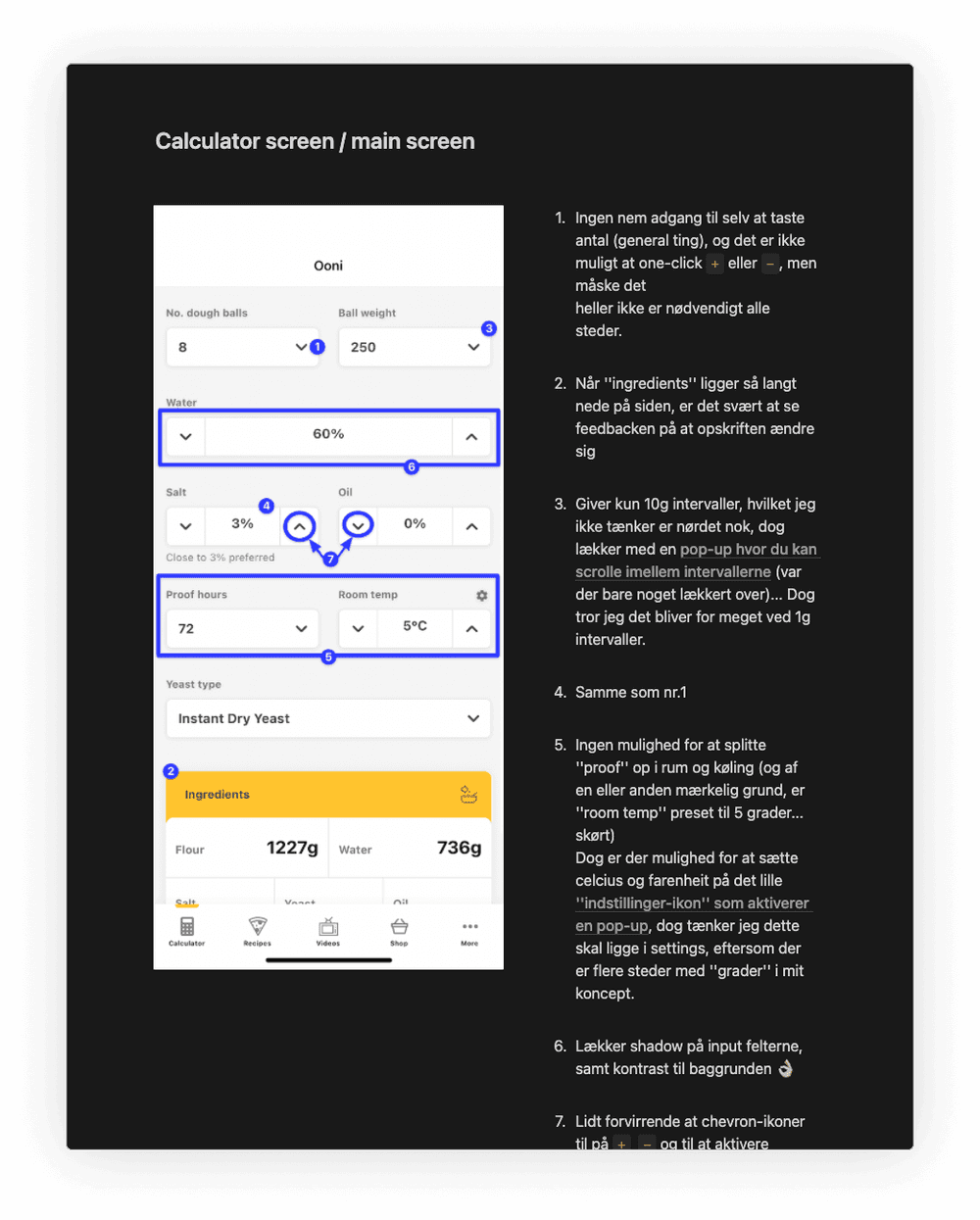 The main focus was on the recipe calculator in the app since it’s the same feature as the PizzApp.