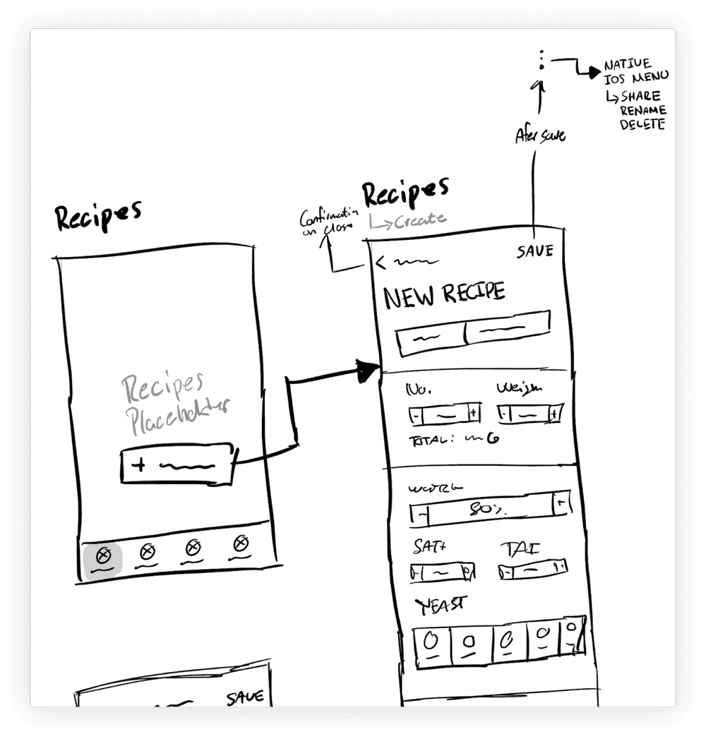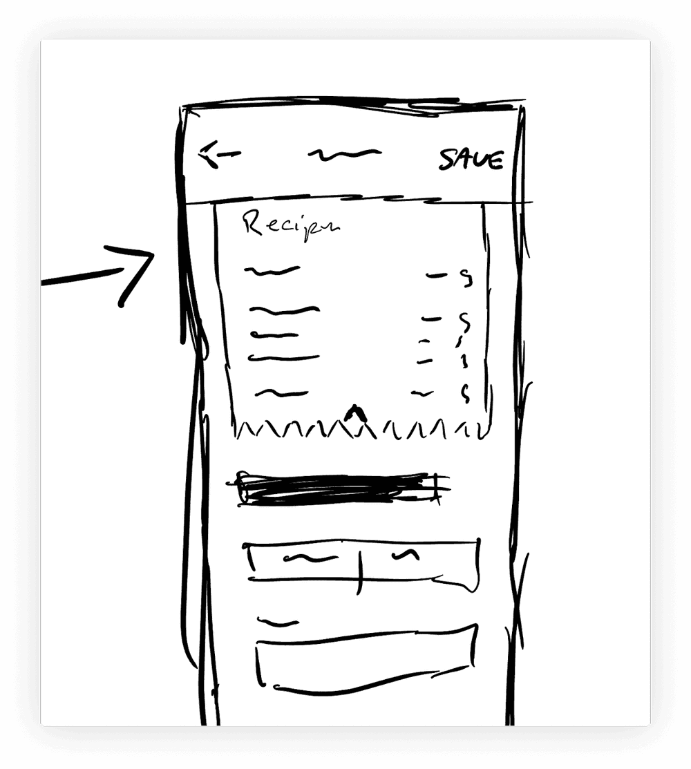 What if the form was the first thing the user saw after creating a recipe, and then the recipe animated into the frame as if the app had processed the user's input and made this custom recipe for them? It could even be designed as a paper receipt. It sounded crazy in my head, but I had to sketch it out and see if it would work.