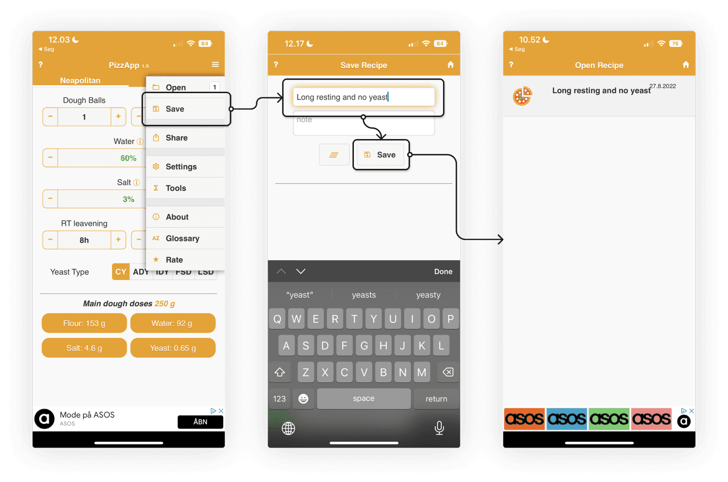 The app has a great feature where the user can save recipes for later use, and also document pictures of the final baked pizzas. But it’s quite hard to find this feature, and I thought this was a shame.